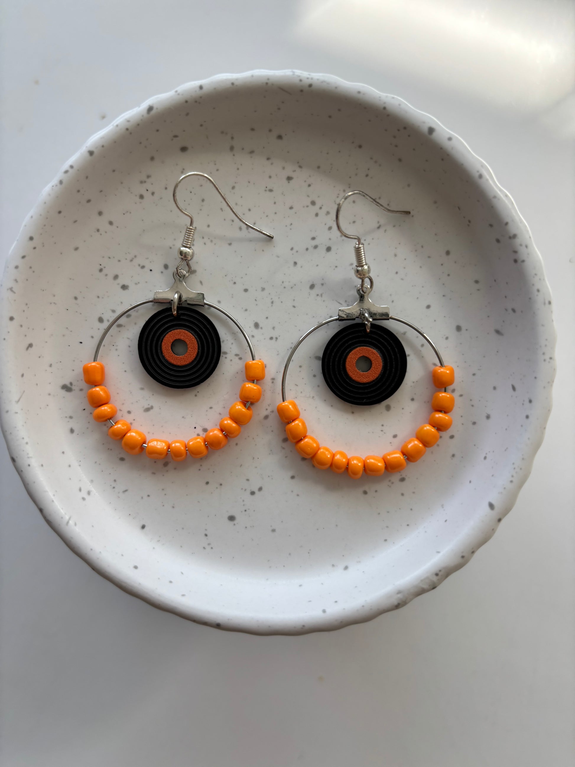 Vinyl record hoop earring